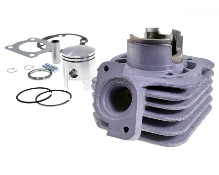 50ccm Alu Sport Zylinderkit aus dem Hause AIRSAL, passend für Fahrzeuge mit luftgekühltem kompatibel mit Peugeot stehend Motor. Der spanische Markenanbieter setzt bei diesen Zylindern auf Aluminium mit einer hartverchromter Laufbahn, welche gegenüber Grauguss eine deutlich bessere Wärmeableitung aufweist. Dadurch ist der Zylinder weniger anfällig für Verschleiß und Kolbenklemmer durch Temperaturprobleme. Leistungsmäßig ist der Alu-Sport mit seinem einteiligen ovalen Auslass und zwei Kolbenringen bei ca. 8 PS anzusiedeln. Der Zylinder ist deutlich verschleißärmer und alltagstauglicher als andere in seiner Klasse und glänzt mit einer ordentlichen Beschleunigung. Der Vergaser sollte passend abgestimmt werden, ein größerer Vergaser ist nicht zwingend nötig, wir empfehlen jedoch ein 17,5mm Vergaser und einen Sportauspuff um das Potenzial des Zylinders auszunutzen.