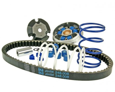 Nun gibt es die Hi-Speed von Polini auch als Kit mit einem sehr umfangreichen Lieferumfang zu einem günstigeren Set-Preis. Der Name Hi-Speed steht für spürbar besseren Anzug und ruhigeres Schaltverhalten. Das Kit wird wie abgebildet mit 2 Sätzen 16x13mm Variorollen mit 10g und 7,7g, 1 Satz Gleitstücke, 2 Gegendruckfedern, einer offenen Variohülse und einem Keilriemen ausgeliefert. Alles in gewohnt hoher Polini Qualität.