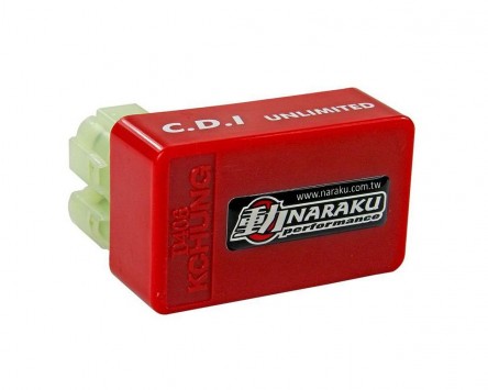 NARAKU Racing CDI ohne Drehzahlbegrenzung. Diese CDI verfügt über eine leistungsoptimierte Zündkurve und bildet somit die ideale Ausgangsvoraussetzung für weitere Tuningmaßnahmen, wie zum Beispiel die Verwendung eines Big Bore Kits. Passend für Fahrzeuge mit 125 / 150ccm GY6 4-Takt Motor. Bei dieser CDI handelt es sich um eine AC Version.
