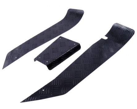 Riffelbleche sind DER Style Dauerbrenner aus den 80/90er Jahren. Die Bleche sind bereits vorgebogen und müssen nur noch auf dem Bodenblech verschraubt oder vernietet werden. Auch ein leicht angerostetes Bodenblech lässt sich zugunsten der Optik damit leicht kaschieren. Lieferbar als 3-teiliges Set oder nur das Mittelteil für den Durchstieg. Verfügbar in Riffel (diagonal gerippte Struktur) - oder Propellerblech Optik, Aluminium poliert, schwarz- oder weiß pulverbeschichtet.
