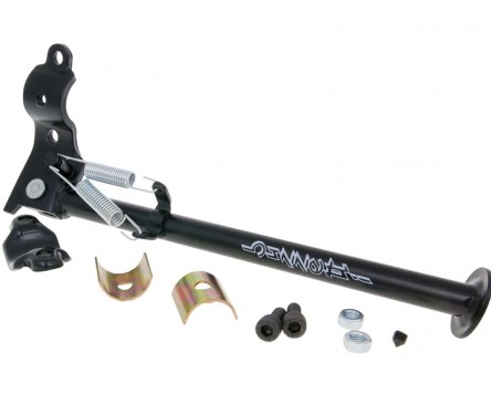 Der universelle Seitenständer von BUZZETTI ist ein genauso cooles, wie auch praktisches Zubehörteil. Statt den Roller umständlich aufbocken zu müssen, kann man diesen damit kinderleicht und sicher in einer sportlichen Schräglage abstellen. Die Seitenständer sind mit einer Feder ausgestattet, damit diese alleine zurückklappen. Durch diese Funktion dürfen die Seitenständer legal im öffentlichen Straßenverkehr eingesetzt werden. Der universelle Seitenständer kann an Rahmenteilen mit 26 oder 32mm Durchmesser montiert werden und eignet sich für viele verschiedene Roller, Mofas und Mopeds.