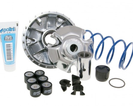Die Polini Maxi Hi-Speed Variomatik zählt zu den leistungsstärksten Tuningteilen für Maxi-Roller. Ein besonderes Augenmerk liegt auf der innovativen Konstruktion der Rollenlaufbahnen, die das vorhandene Leistungsband des Motors optimaler nutzen als herkömmliche Variomatiksysteme. Das führt zu einer Anpassung der Übersetzung in einem drehmomentoptimierten Drehzahlbereich, was zu einer verbesserten Beschleunigung und einer höheren Endgeschwindigkeit beiträgt.