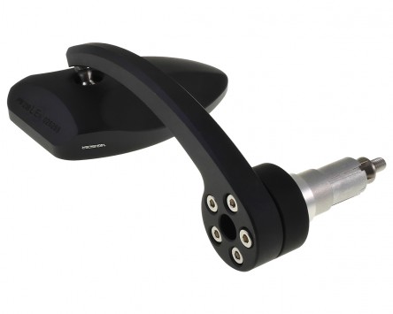Edler Lenkerendenspiegel von HIGHSIDER aus schwarz eloxiertem Aluminium mit gebogenem Stiel. Der Spiegel passt für Lenker mit einem Lenkerinnendurchmesser von 12 bis 22mm, d.h. für die meisten 7/8 Zoll und 1 Zoll Alu-, oder Stahllenker. Der Spiegel kann rechts und links verwendet werden. Durch die vorhandene E-Nummer kann der Spiegel legal im öffentlichen Straßenverkehr verwendet werden.