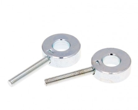 Kettenspannerpaar für verschiedene Enduro-Schaltmopeds der Baujahre 2006 bis 2010 mit 12mm Hinterradachse wie z. B. Aprilia RX, SX, Derbi Senda oder Gilera RCR und SMT.