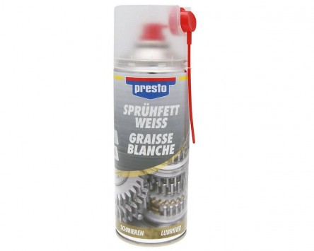 Presto Sprühfett weiß ist ein haftbeständiges Schmiermittel für mechanische Teile aus Metall und Kunststoff zur Verhinderung von Reibung. Die typischen Einsatzorte bei Moped bzw. Fahrrad sind: