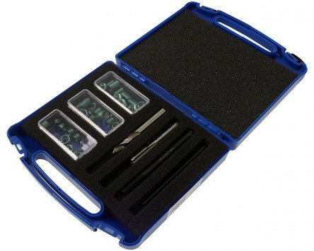 HeliCoil M 8 x 1,25 - Reparatur-SET mit je 10 Gewindeeinsätzen in 3 Längen, Spiralbohrer, Handgewindebohrer, Einbauspindel und Zapfenbrecher.