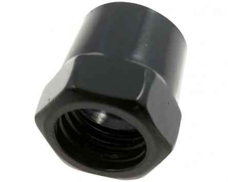 Spiegelmutter 14 mm, schwarz, M10 x 1.25 Rechtsgewinde, für Spiegelarme mit 10 mm Durchmesser.