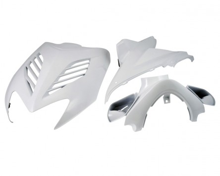 Von DMP können wir ein optisches Highlight für alle 50ccm und 100ccm Yamaha Aerox und MBK Nitro Modelle bis Baujahr 2013 anbieten. Dieses Verkleidungskit verleiht dem Roller einen Racing-Look und setzt sich deutlich von der originalen Verkleidung ab, da in diesem Kit jedes einzelne Verkleidungsteil optisch verändert wurde. Die Montage gestaltet sich sehr einfach, da die Verkleidungsteile einfach eins zu eins ausgetauscht werden. Die Blechmuttern und Schrauben sind bei diesem Kit nicht enthalten, können jedoch einfach vom Original weiterverwendet werden, oder Sie bestellen diese einfach in unserem Shop mit. Das Verkleidungskit ist auch in weiteren Farbe in unserem Shop erhältlich.