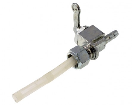 Manueller Benzinhahn von 2EXTREME, passend für verschiedene Mofas und Mopeds wie z.B. Hercules / Sachs Prima 50. Oftmals führt eine Fehlfunktion dieses Bauteils zu Startschwierigkeiten und Motoraussetzern während der Fahrt. Die Filter des Benzinhahns sind kaputt oder der Durchlauf bereits verstopft und der Benzinhahn gibt den Kraftstoff nicht oder nur in unzureichendem Maße frei. Zur Behebung trägt nur der komplette Austausch bei.