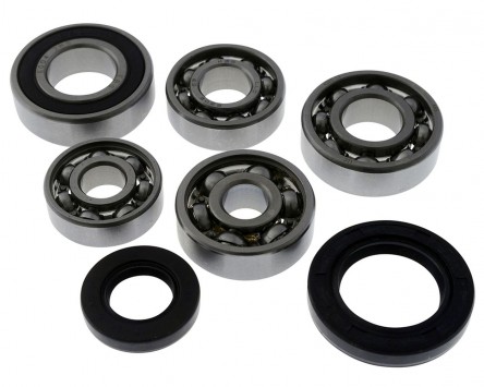Enthalten ist das Kugellager für den Getriebeeingang, welches meist im Getriebedeckel sitzt und die Kugellager, welche die einzelnen Getriebewellen lagern. Dazu kommt das Radlager, welches durch die beidseitige Gummidichtung gegen Verschmutzungen geschützt ist. Im Set sind außerdem die Wellendichtringe für den Getriebeeingang (Getriebedeckel) und Getriebeausgang (Radwelle) enthalten.