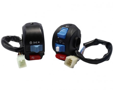 Komplettes Schaltereinheit Set, bestehend aus rechter und linker Schaltereinheit, passend für viele verschiedene China 4-Takt Roller. Dieses Set eignet sich optimal für den Austausch in die Jahre gekommener oder defekter Schaltereinheiten. Die Schaltereinheiten haben alle nötigen Funktionen und können einfach eins zu eins ausgetauscht werden.