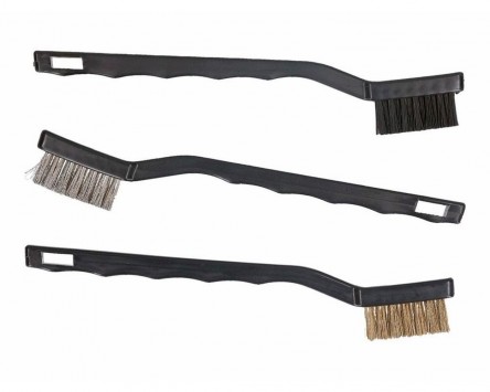 3-teiliges Set Bürsten bestehend aus Drahtbürste, Messingbürste und Bürste mit Kunststoffborsten.