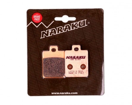 Naraku Sintermetall Bremsbeläge mit KBA-Freigabe für Roller & Moped. Hervorragende Bremswerte, exakte Dosierbarkeit, sehr gute Nassbremseigenschaften, niedriger Verschleiß und minimales Fading bei hohen Bremstemperaturen sind die Haupteigenschaften von diesem hochwertigen Bremsbelag.