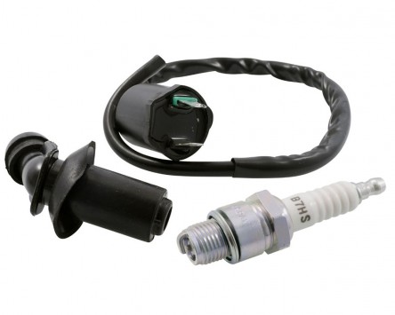 Set bestehend auf Zündspule, Zündkabel, passendem Kerzenstecker und einer NGK B7HS Zündkerze für alle gängigen stehenden 50ccm kompatibel mit Peugeot Motoren.