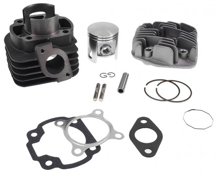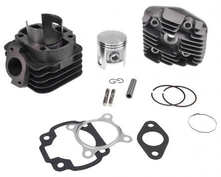 Das Kit wird mit allen benötigten Kleinteilen wie Dichtsatz, Kolbenringe, Kolbenclips etc. ausgeliefert. Der mitgelieferte Zylinderkopf benötigt zudem eine Kurzgewinde Zündkerze mit M14 Gewinde.
