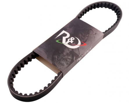 Sehr hochwertiger Keilriemen von R&D, zu einem super Preis- / Leistungsverhältnis. Durch die hochwertigen Materialien kann der Keilriemen als Ersatz für den Original Keilriemen genutzt werden. Antriebsriemen können recht lange halten, jedoch werden diese im Laufe der Zeit porös und wenn dieser einmal reißt, entstehen oft Folgeschäden. Ebenfalls überträgt ein verschlissener Keilriemen die Leistung nicht mehr sauber ans Hinterrad, daher empfehlen einen Wechsel alle 5000-6000km. Oftmals erkennt man einen verschlissenen Riemen auch daran, dass die Endgeschwindigkeit vom Roller Schritt für Schritt abnimmt oder dieser anfängt zu rutschen. Dies liegt daran, das die Breite des Riemens abnimmt und auf dem Variator nicht mehr bis nach ganz oben aufsteigen kann.