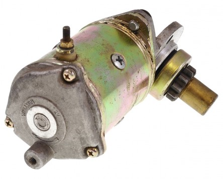 Anlassermotor von UNI AUTO "Made in India", passend für viele verschiedene Vespa Modelle. Mit den Jahren unterliegt auch der Anlasser einem gewissen Verschleiß und zeigt Abnutzungserscheinungen. Bei abgenutzten Zähnen kann der Roller nicht mehr gestartet werden und man muss sich mit dem Kickstarter aushelfen. Dieser Anlasser ist der perfekte Ersatz zu einem super Preis- / Leistungsverhältnis.