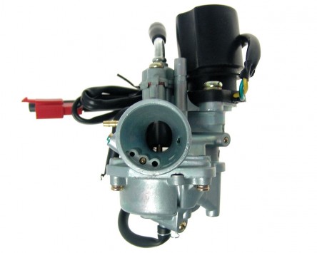 Mit diesem 16mm Ersatz- Vergaser schaffen wir eine Alternative zu den extrem überteuerten Originalvergasern. Es handelt sich hierbei um einen günstigen Nachbau-Standardvergaser der komplett mit E-Choke ausgeliefert wird. Der Vergaser passt generell auf alle Fahrzeuge die einen Vergaser mit Steckverbindung haben bzw. auf Fahrzeuge mit einem passenden Ansaugstutzen indem der Vergaser gesteckt und nicht verschraubt wird. Dieser Vergaser passt somit nicht auf kompatibel mit Peugeot, Kymco, Honda oder andere Fahrzeuge bei denen der Vergaser ab Werk aus mit dem Ansaugstutzen verschraubt wird. Bei Fahrzeugen mit Minarelli Motor ist dieser Vergaser größer als der originale Vergaser, daher ist dieser Vergaser bei diesen Fahrzeug als Tuningvergaser anzusehen. Der Vergaser besitzt einen Benzin-, Unterdruck- und Öl-Anschluss.