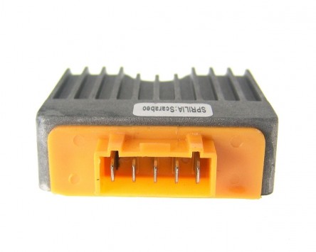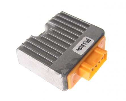 Spannungsregler für 50-125ccm 4-Takt Roller von Aprilia, Derbi, Malaguti, Piaggio... Viele neue Fahrzeuge die mit einem 4T Piaggio-Motor ausgestattet sind, haben diesen 5-poligen Spannungsregler verbaut. Vergleichen Sie bitte die Abbildung mit dem Originalteil. Der Gleichrichter - oder auch Spannungsregler genannt - wandelt die von der Lichtmaschine erzeugte Wechselspannung in die im Bordnetz genutzte Gleichspannung um. Dieser lädt die Batterie und verhindert das Durchbrennen von Glühlampen. Aufgrund der hohen Temperaturen am Gleichrichter wird dieses Bauteil - trotz Kühlrippen - seh heiß und geht dadurch häufiger kaputt. Sie merken, ob der Gleichrichter kaputt ist, wenn immer die Glühlampen durchbrennen und stark flackern, die Batterie nicht mehr geladen wird oder bei manchen Fahrzeugen die Zündanlage nicht mehr funktioniert.