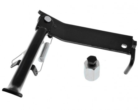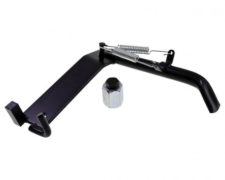 Hochwertiger Seitenständer in schwarz, passend für Yamaha Jog R und MBK Mach G 50ccm Modelle mit luftgekühltem Motor. Seitenständer sind überaus praktisch. Einfach mit dem Fuß den kleinen Ständer ausfahren und das Fahrzeug abstellen. Gerade bei Kurzstrecken in der Stadt sehr angenehm, da man das schwere Fahrzeug nicht mühsam auf den Hauptständer aufbocken muss. Durch leichtes angestoßen geht der Seitenständer anschließend automatisch in die Ausgangsposition zurück