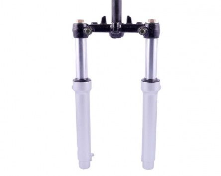 Preiswerte Ersatz Gabel in Erstausrüsterqualität für CPI Oliver, Hussar, Popcorn, Keeway Focus, F-Act usw. als Komplett-Kit. Perfekt als Ersatz wenn nach einem Sturz die originale Gabel verzogen oder altersbedingt undicht oder rostig ist. Mit dem Wechsel der Gabel ist es zwingend notwendig den Steuersatz mit zu wechseln, dieser muss wie die Steckachse und weitere Anbauteile separat erworben werden.
